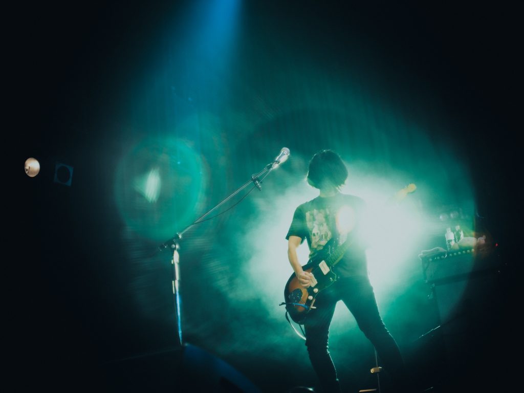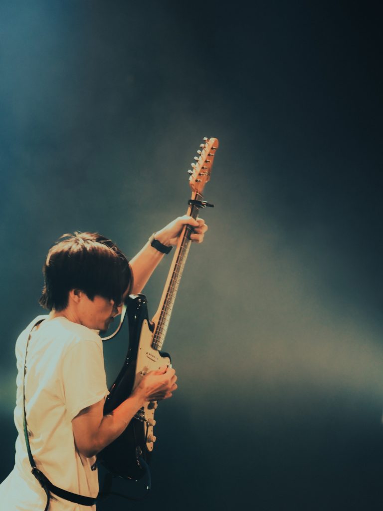 かくして、誰でもホイホイみたいな間口を用意したkurayamisakaは、そのうえでライヴとなると、ギターロック/オルタナティヴ・バンドへの愛を大爆発させるのだ。もっともわかりやすいのはbloodthirsty butchersへの憧憬(清水はこのバンドTシャツをステージ正装としている)。とにかくばかでかいフィードバックノイズ。そこまでやるかというトリプルギターの轟音。〈俺のギターを聴け!〉というエゴも少しあるかもしれない。ただ、間奏ソロのたびにギターを頭上に掲げ、これ見てこれ見て!とアピールする清水とフクダリュウジ(ギター)は、とどのつまり「ギターって、バンドってカッコよくない?」と言っているようにしか見えない。俺、ではなく、憧れてきたロックバンドが主語。だからこそ無邪気。思わず頬が緩んでしまうシーンがこの日も多々あった。