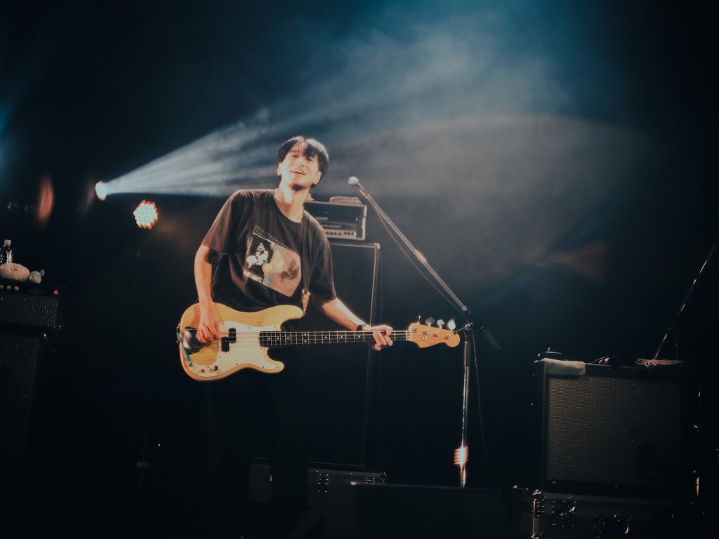 バックドロップもない質素なステージ。SEもなく登場した5人は、フロアに深く一礼した後、堀田庸輔(ドラム)の元に集まって拳を突き合わせ「オイッ!」と声を出す。部活動の儀式みたいなものだろう。自分の足元を見るだけの内向性はなく、3曲目「sunday driver」ではフクダと阿左美倫平(ベース)がジャンプしながら左足を蹴り上げるポーズを楽しそうに決めている。モロにニルヴァーナ風コードで進む後半の「sekisei inko」になると、フクダと阿左美がそろってヘッドバンキング、いっぽう清水と内藤はそろってぴょこぴょこ飛び跳ねており、ポカリスエットが似合いそうな青春チーム感には思わず「交ぜて!」と言いたくなってしまった。キュートにそろっているのだから突発的な動きではない。憧れたこのポーズやってみたかった。やってみたらやっぱり楽しかった! そんな感覚だと思う。アマチュアっぽいと言えばその通りだし、しかし楽曲クオリティはすでにトップクラスに突き抜けている。今後動員はさらに伸びるだろうし、となると何を見せるのか、何を語るべきか、プロとしての自覚は否応なく芽生えていく。今だけ、今だからこそのピュアネスが、ステージでまばゆいほど弾けていた。そして、その理由が、後半の清水のMCで語られていたのだ。
