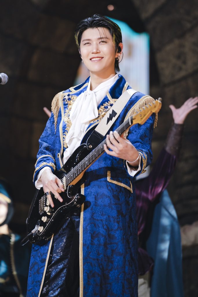 Mrs. GREEN APPLEのカラフルな音楽は、今や老若男女の生活を彩っている。楽曲が演奏されるたび、歓喜や感動に包まれるこの光景は、メンバーがずっと求めていたものだろう。フェーズ2完結のタイミングで実現した、5大ドームツアーの最終日。中世の貴族を思わせる衣装を纏った大森元貴(ヴォーカル&ギター)、若井滉斗(ギター)、藤澤涼架(キーボード)は、手を繋ぎ、笑顔で姿を見せた。そして黄金のテープキャノンが放たれ、ライヴがスタート。きらめく音楽と大歓声は、フェーズ2を駆け抜けた3人を祝福しているようだった。