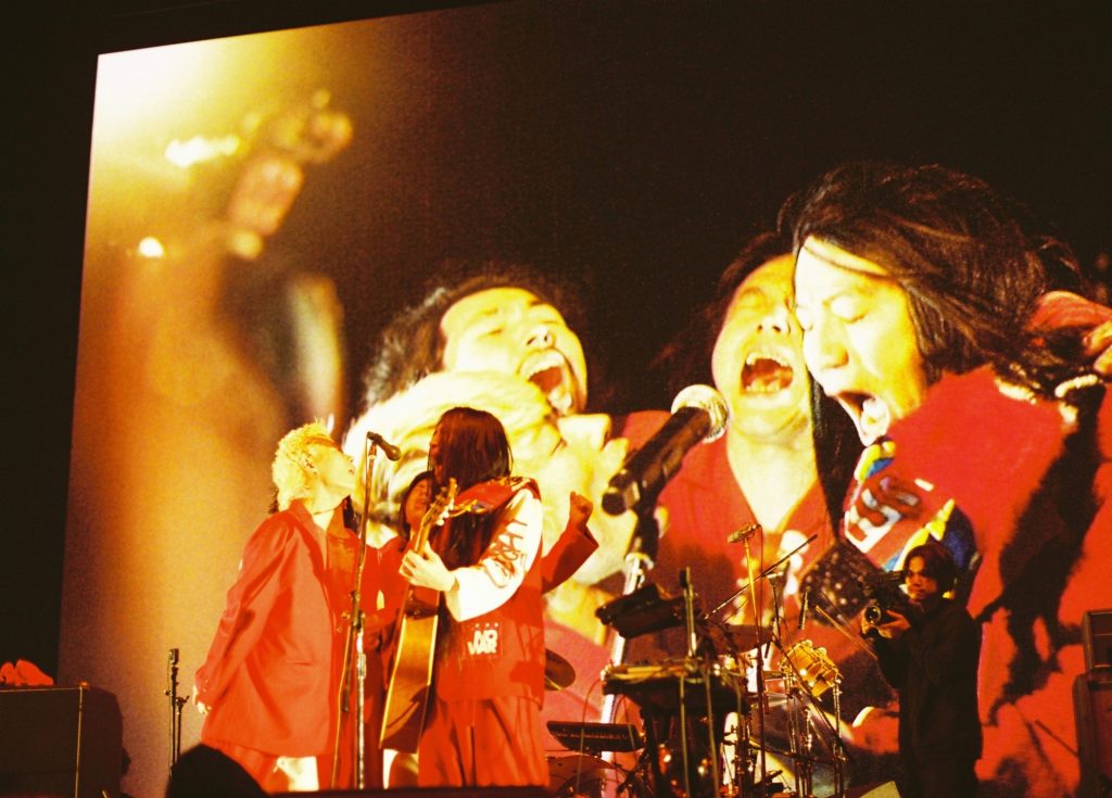 できすぎの脚本がGEZANの性格をよく表している。マネジメントも持たないDIY活動。過去の例に倣わない独創性はもちろん、時代を巻き込んでいく発言の鋭さ、直感だけで転がっているような危うさが魅力となり、このバンドを支えなければ、という連帯が生まれていく。それは限りなく宗教にも近く、一歩引いて見れば不気味な匂いを放ち出す。九段下駅に着いた瞬間からやたらと目につく赤、赤、赤……。頼もしくもあり怖くもある熱狂だ。