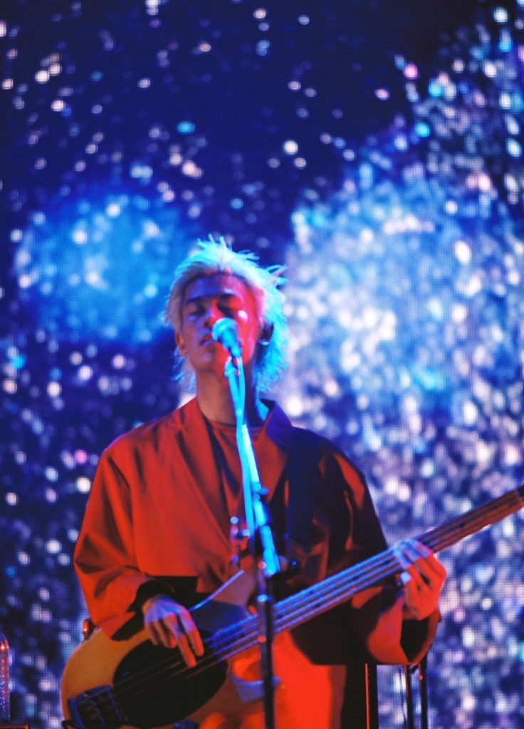 と、このような書き方が危険なのだ。いっぽうで、初のメドレーだというのに寸分乱れない演奏力、次々移り変わる楽曲とぴったりリンクするスクリーン演出、赤と同じくらい青を効果的に使う照明の美しさはどう説明すればいいのだろう。行き当たりばったりに見えるGEZANの表現は、しかし想像以上に高いクオリティに担保されている。計画性と技術力がないとできないチームプレイ。予算のないDIYだからと誤魔化すところが何もない、プロフェッショナルな演出力。平たく言って、4人には武道館のステージがとても似合っていた。