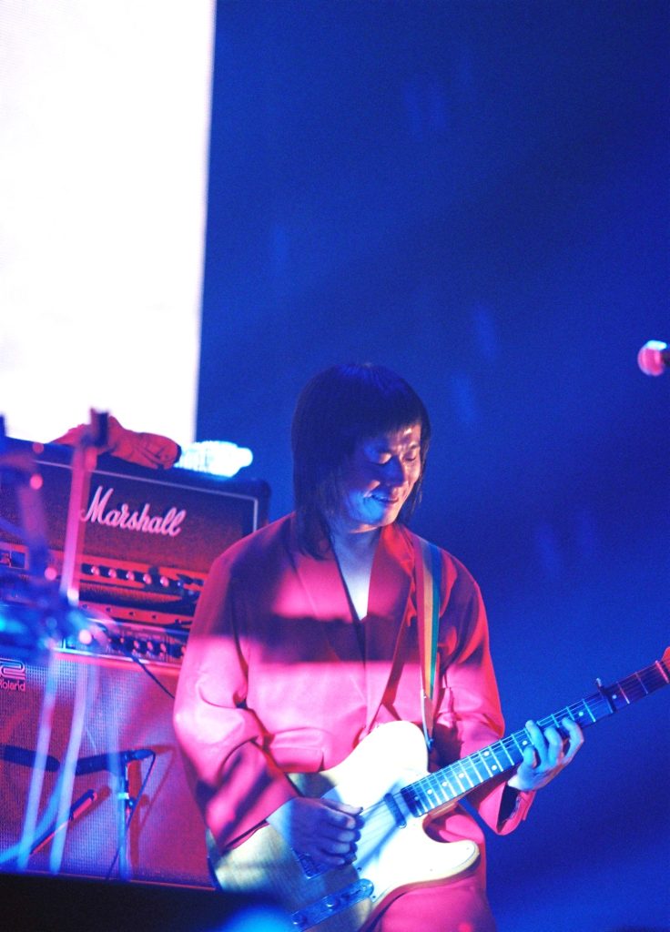 そしてまた、「beat」で垣間見せたストーリーを補完するのがアンコールの「BODY ODD」なのだった。仲間たちが次々と飛び出すマイクリレーの曲であり、鎮座DOPENESS、向井秀徳、盟友・下津光史など豪華ゲストが登場するなか、最後に出てきたのはシャーク安江とカルロス尾崎! 抜けていった元メンバー、GEZANの初代リズム隊である。傷ついた別れの先にこんな再会があるのか。そんなヒューマンドラマをGEZANが見せるのか。シャークとカルロスが「NEVER END ROLL!」と叫び、続いてひときわポップな「END ROLL」に繋がるのも、なんだか嘘みたいに綺麗なシーンだった。