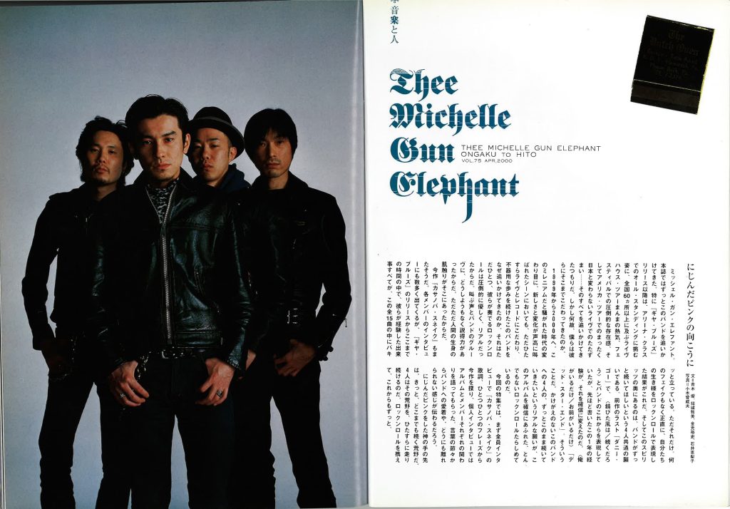 そしてウエノコウジ。プロレスとサウナと酒には一家言持つベーシスト。彼がミッシェル・ガン・エレファントに持つ情熱こそが、このバンドの存在位置を物語ってくれていると思う。みずからをミッシェルNo.1ファンと言い、ベースがどうこうよりバンドが大事で、続けていくことを強く願う男。きっとここが、はじめて自分が見つけた落ち着ける場所であり、自信が持てる場所なんだろう。そしてここに関わるいろんなことを、何より大切にしていたいに違いない。